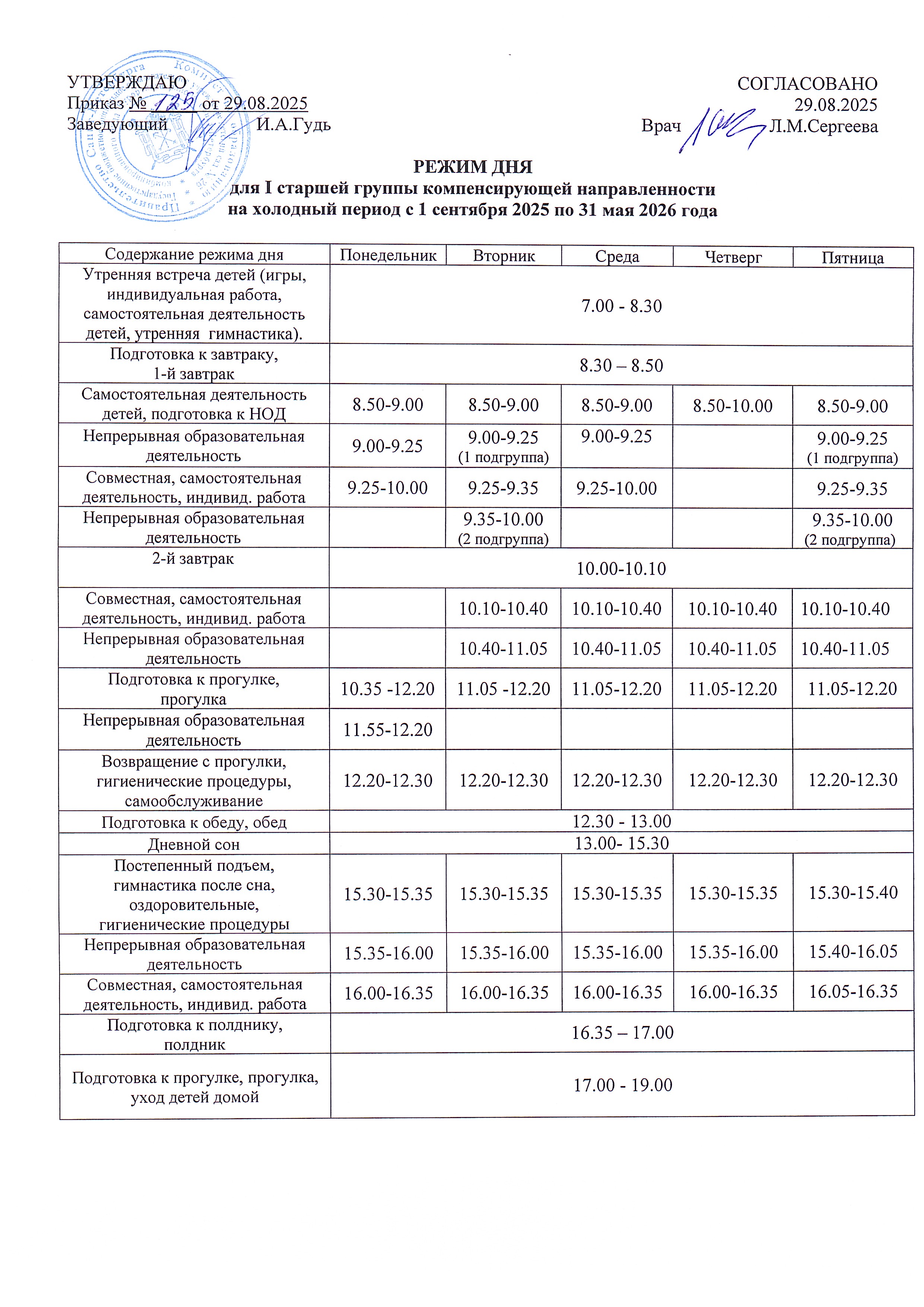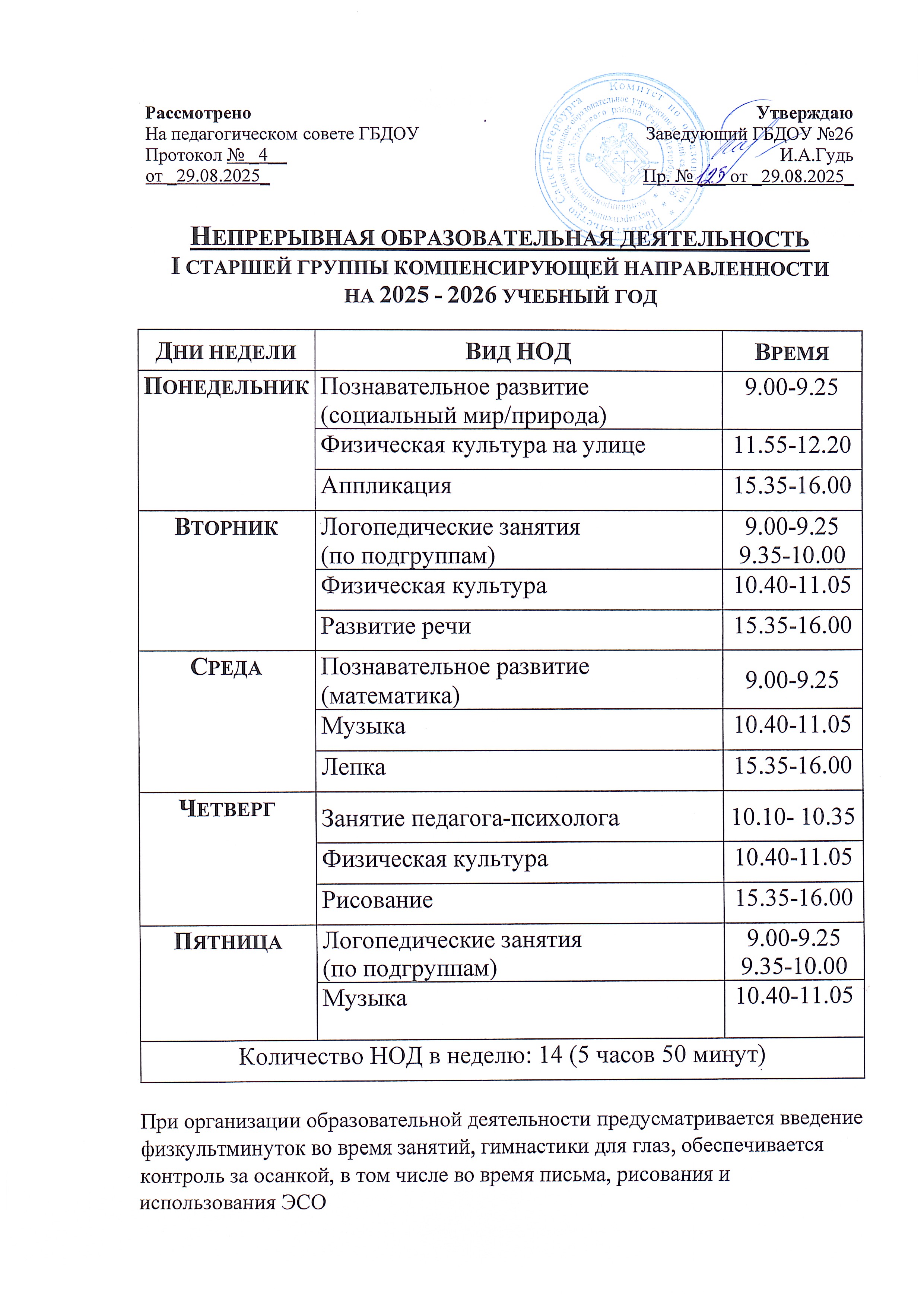Расписание непрерывной образовательной деятельности