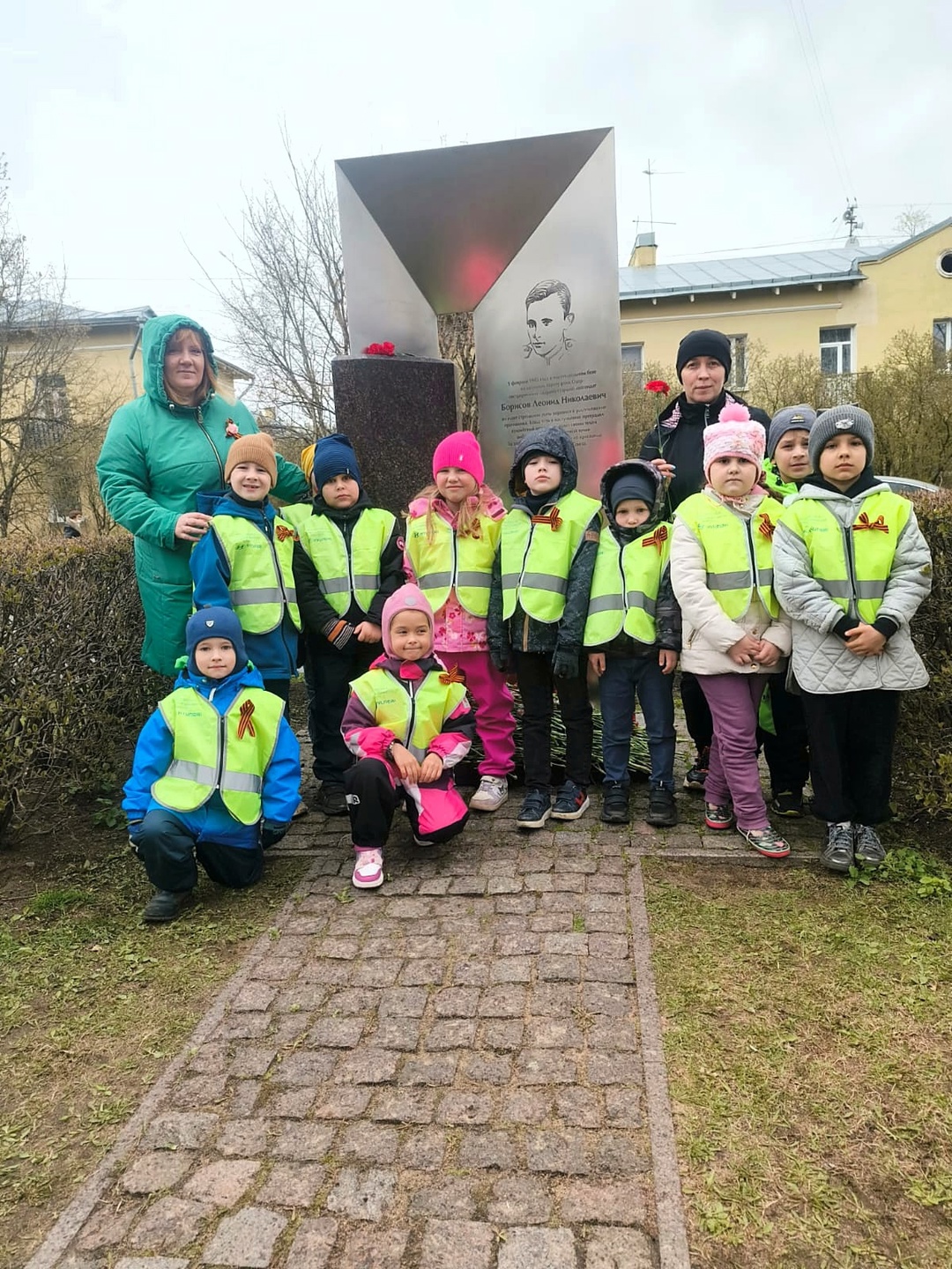 Накануне Праздника Великой Победы 9 мая, воспитанники детского сада возложили цветы к стеле Героя Советского Союза ВОВ, Борисова Л. Н. и к памятнику Солдат на Сестрорецком мемориальном кладбище.